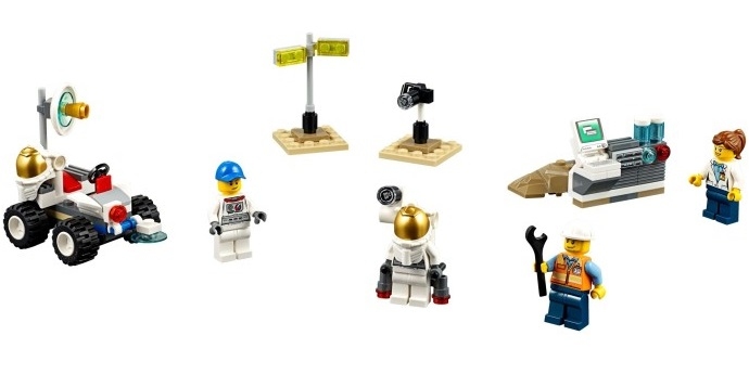 В наборе Лего 60077 присутствуют 4 минифигурки с аксессуарами: учёный, инженер и 2 космонавта.