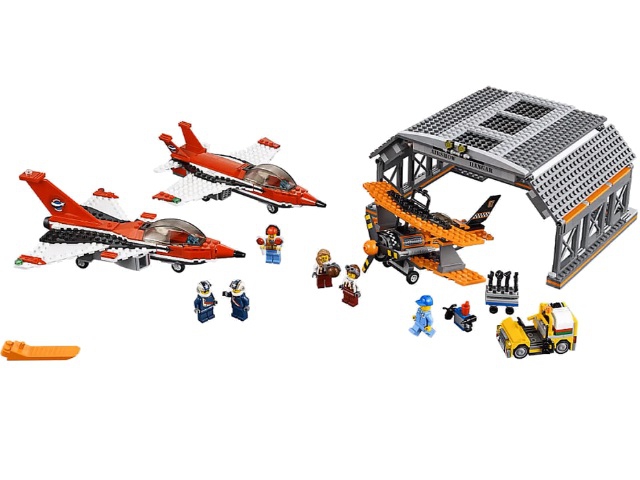 В наборе присутствуют 6 минифигурок с аксессуарами: 2 пилота реактивных самолётов, пилот и штурман биплана, водитель сервисного автомобиля и регулировщик взлётной полосы.