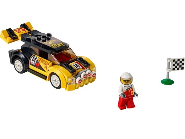 Также в наборе присутствует минифигурка гонщика с защитным шлемом и финишным флагом.