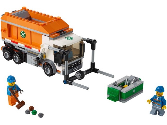 Чтобы навести порядок на городских улицах, Вам понадобится бригада рабочих и мощный мусоровоз из набора Лего 60118. Его ходовая часть представлена усиленной подвеской и тремя парами колёс.