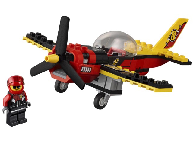Гоночный самолёт из набора Лего 60144 представляет собой яркую и функциональную модель, которая не оставит равнодушным ни одного любителя скоростных полётов. Фюзеляж самолёта выполнен из контрастных жёлто-чёрно-красных элементов. На заострённых крыльях и хвостовом оперении располагаются наклейки с изображением логотипов аэросоревнований.