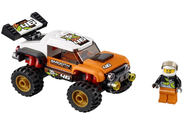 Гонки на внедорожниках притягивают к себе внимание тысяч зрителей по всему миру. Это очень опасное и непредсказуемое соревнование, победителем которого может стать только самый маневренный и надёжный автомобиль. Именно таким можно назвать грузовик из набора Лего 60146. Его прочный корпус выполнен из контрастных оранжево-белых деталей, украшенных многочисленными наклейками и логотипами. Спереди виден массивный капот с системой освещения и усиленной радиаторной решёткой. За капотом располагается кабина с закруглённым лобовым стеклом. Сняв часть крыши, можно заглянуть внутрь и рассмотреть место водителя, приборную панель и рулевое управление.