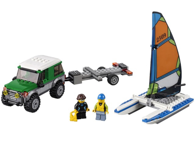 Хорошо, что в распоряжении героев из набора Лего 60149 оказался маневренный и проходимый внедорожник! Его кузов выполнен из зелёно-серых деталей. Спереди виден прямоугольный капот с прозрачными фарами, противотуманными прожекторами и усиленным бампером. За ним располагается кабина с закруглённым тонированным стеклом и боковыми зеркалами. Сняв белую крышу, можно заглянуть внутрь и рассмотреть интерьер. Здесь есть место водителя, рулевое управление, а также пространство для перевозки спасательных жилетов.