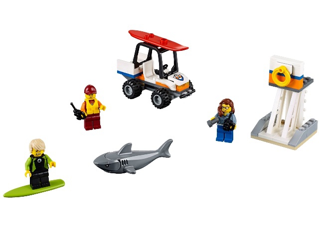 В наборе присутствуют фигурка акулы (длина 7 см), 3 минифигурки: водитель багги, спасатель и сёрфингист, а также множество аксессуаров для игры: 2 доски для сёрфинга, 2 рации, спасательный круг, спасательный жилет, бинокль и бейсболка.
