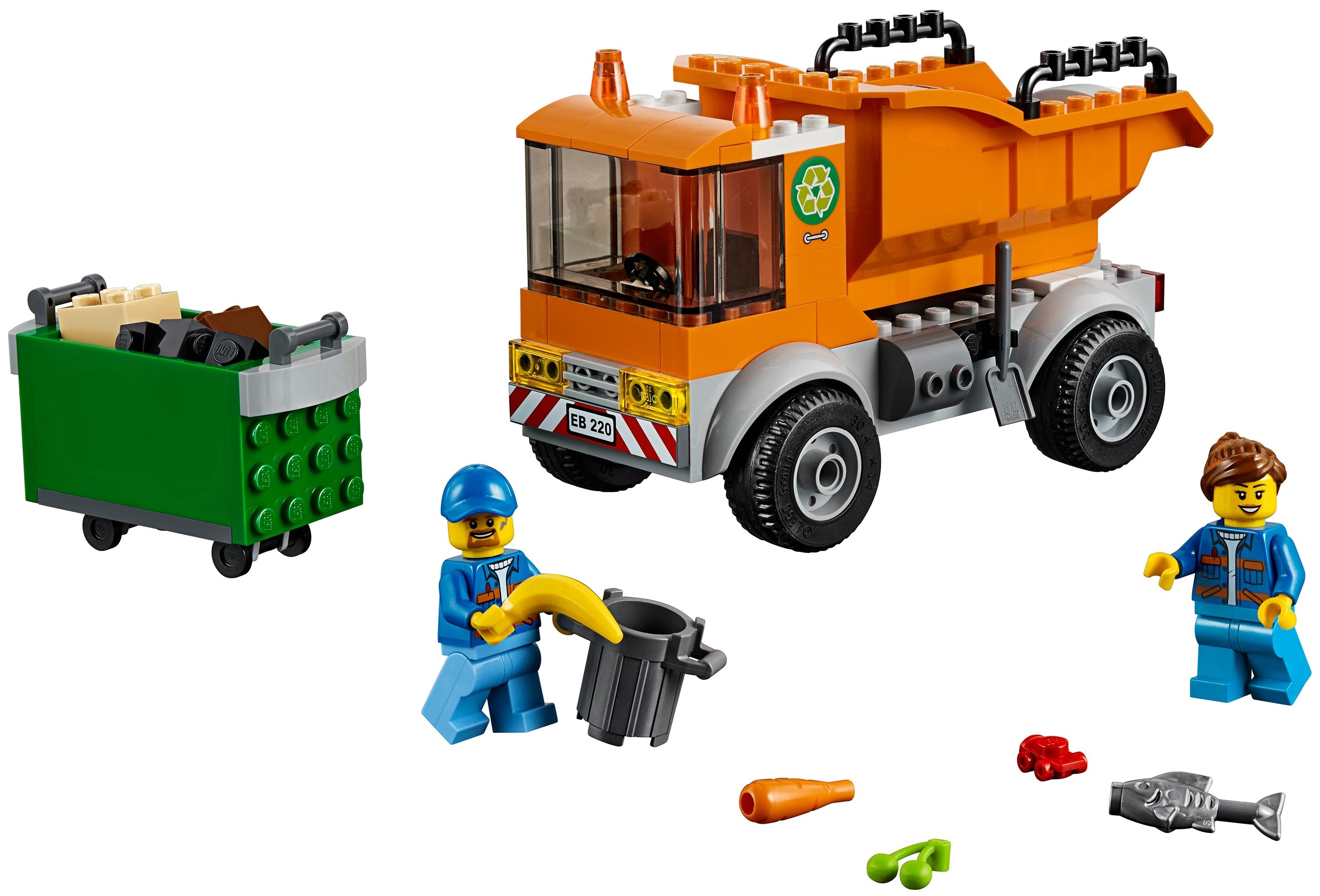 Дополнительно из деталей набора City 60220 собирается мусорный контейнер, в который жители Лего Города выбрасывают свои отходы. Контейнер оснащен небольшими колесиками для его удобной перевозки.