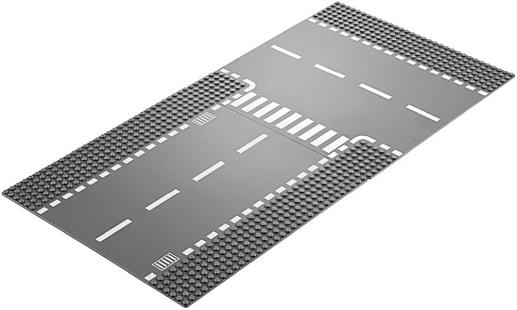 Чтобы проложить транспортные магистрали, Лего выпускает специальные наборы. В них входят пластины в виде отрезков дороги. Лего 60236 содержит 2 плиты: с прямым участком и Т-образным перекрестком. На них нанесена разделительная полоса, выделены обочины. Перед перекрестком предусмотрена пешеходная зона.