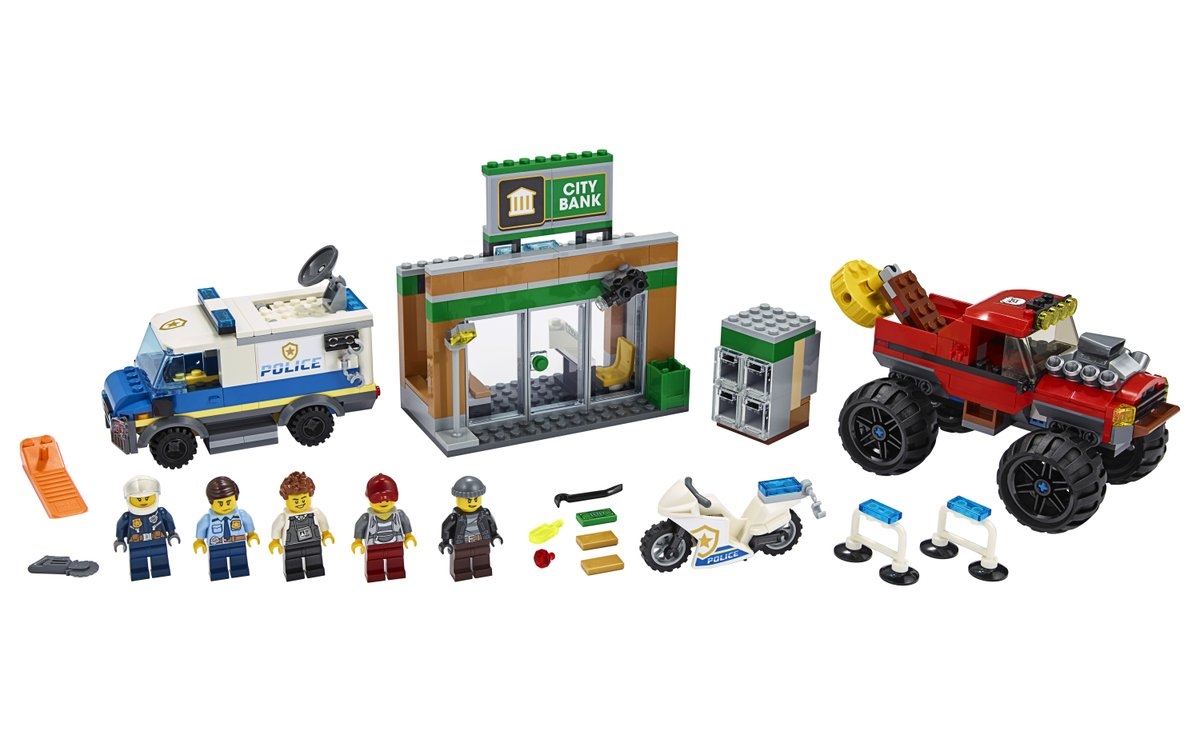 В набор входит всё необходимое для создания захватывающей игры с полицейской погоней. Он состоит из 362 деталей, одной минифигурки работника банка, двух фигурок грабителей и двух фигурок полицейских. Минифигурки одеты в соответствующею одежду и экипировку. Полицейские – в служебную униформу, а грабители пытаются скрыть свою внешность с помощью головных уборов.