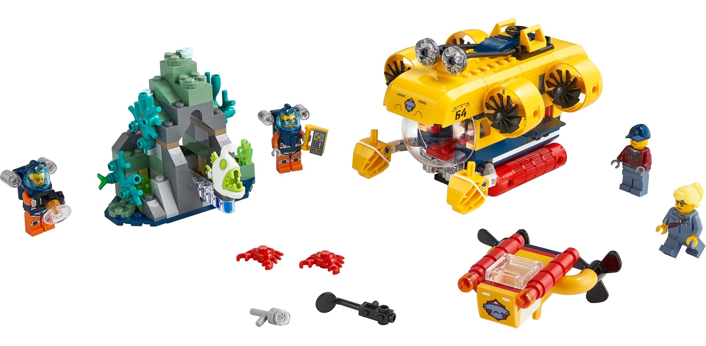 Основной моделью набора Lego City 60264 является мощная и маневренная Подводная лодка. Основную цветовую гамму судна составляют детали желтого, синего и красного цветов.