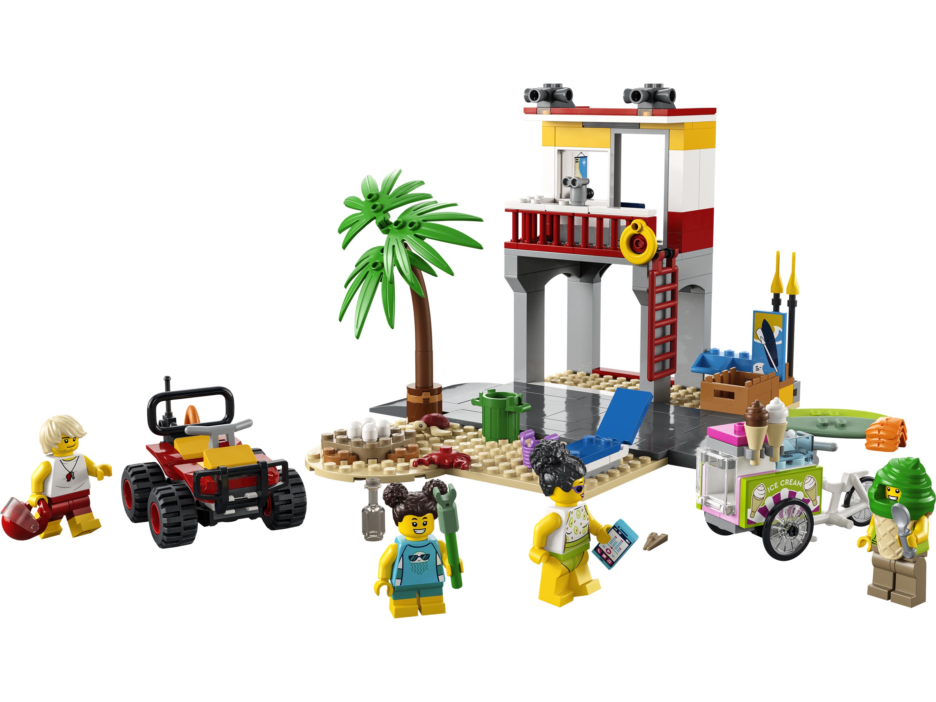В набор входит двухэтажная спасательная станция и автомобиль-квадроцикл, способный развивать высокую скорость даже в зыбучих песках. Также в комплекте присутствует элемент песочного пляжа, шезлонг, пальма, громкоговоритель, бинокль, доски для серфинга, спасательный круг, несколько морских обитателей (черепаха, краб), тележка с мороженым и прохладительными напитками, большой мусорный бак, спасательные жилеты, весла и многое другое, позволяющее создавать эксклюзивные сценарии о доблестных спасателях.