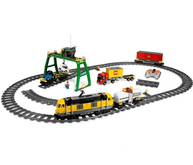 Конечно же, «центральная фигура» Лего Сити 7939 - это поезд, состоящий из локомотива и трех вагонов - товарного, цистерны и обычного.