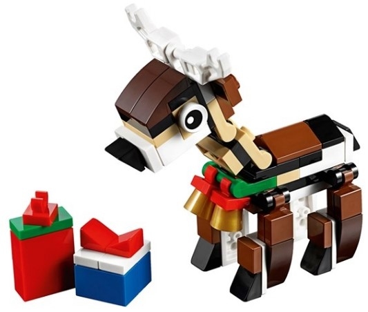 Оленёнок из набора Лего 30474 станет прекрасным дополнением к Вашей коллекции тематических новогодних наборов. Его тело выполнено в бежево-коричневом цвете. Милая мордочка с круглыми глазами и заострённым носом выглядит очень реалистично. Витиеватые белоснежные рога добавляют величественности. На длинной шее видна зелёная ленточка с позолоченными колокольчиками, служащими оригинальным праздничным украшением.