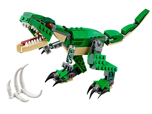Из деталей набора Лего 31058 Вы сможете собрать настоящего древнего ящера. Его тело покрывает толстый слой зелёной чешуи. Спереди видна массивная голова с рыжими глазами и открывающейся пастью, наполненной острыми белыми клыками. Шея достаточно подвижна, что позволяет вращать головой, высматривая и вынюхивая добычу. Шарнирное строение передних и задних лап также добавляет динозавру реалистичности. Во время охоты он может принимать множество поз и не терять равновесие. В этом ему помогают когтистые задние лапы, повышающие устойчивость, и хвост, служащий дополнительной опорой или противовесом.
