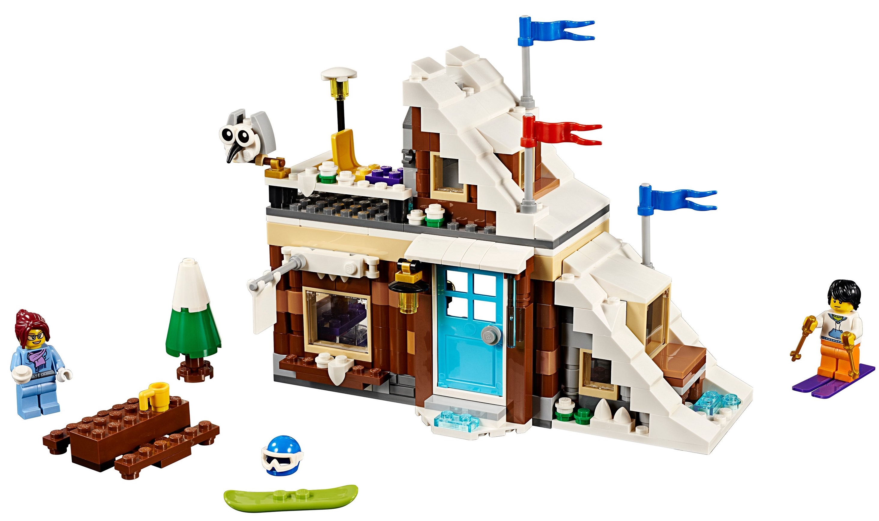 Из деталей набора Лего 31080 Вы сможете построить модель зимнего дома. Его стены выполнены из крепких коричневых брёвен, базирующихся на каменном сером фундаменте. Крыша, козырьки и подоконники покрыты толстым слоем снега. Кое-где видны свисающие сосульки. Фасад украшен небольшой вывеской, элегантным фонарём, разноцветными флагам и флюгером в виде совы.