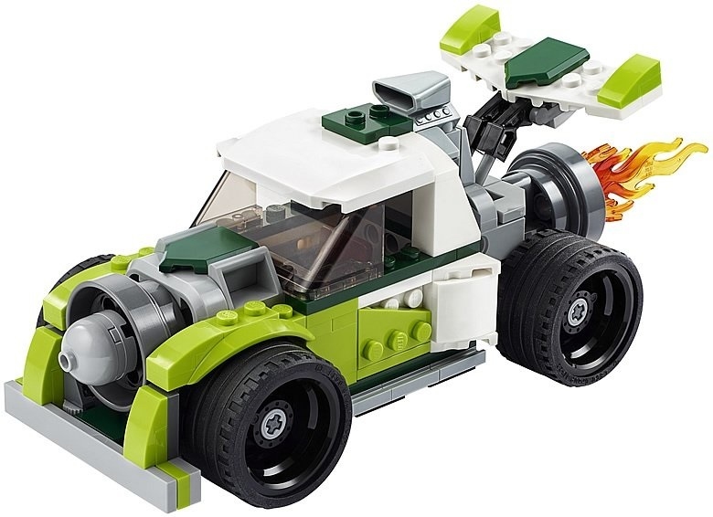 Построй для своего грузовика-ракеты несколько кольцевых трасс — и место для этапов автогонок готово! А когда надоест проводить гонки — собери из деталей конструктора внедорожник, который сможет преодолеть любые препятствия. Отправляйся на нем в горы по крутой извилистой дороге. Переделай внедорожник в третье транспортное средство — квадроцикл для заездов по песчаному пляжу.