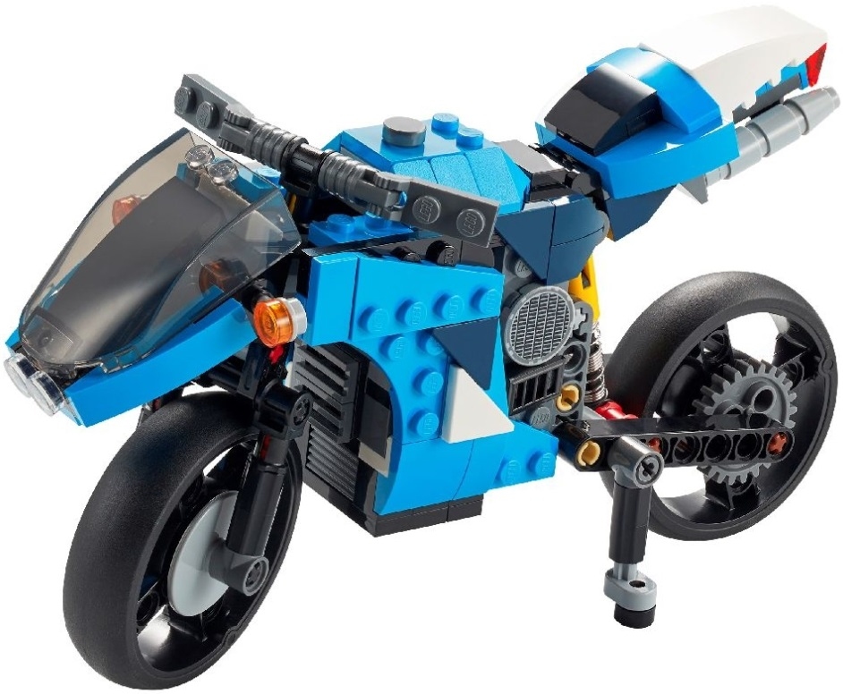 Любители гонок на мотоциклах могут купить в нашем интернет-магазине Лего 31114, чтобы собрать из его деталей супербайк. Его конструкция обладает характеристиками, которые свойственны специальным гоночным мотоциклам. Посмотри, какой у этого супербайка низкий руль, обтекатель, высокие подножки. А еще у реального спортивного мотоцикла есть мощный высокофорсированный двигатель, а тормоза отличаются повышенной эффективностью, ведь иногда приходится внезапно останавливаться.