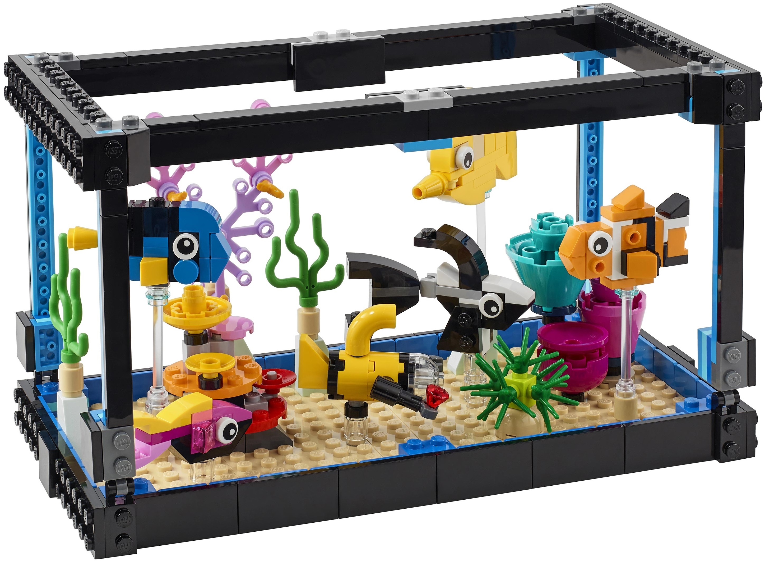 Конструктор Lego 31122 — это отличная альтернатива настоящему живому аквариуму, данный набор одинаково будет актуален как для детей, так и для взрослых, он станет прекрасным украшением любого интерьера. Благодаря набору можно подробнее изучить виды морских экзотических рыб или придумать захватывающую историю о поисках затерянных сокровищ.