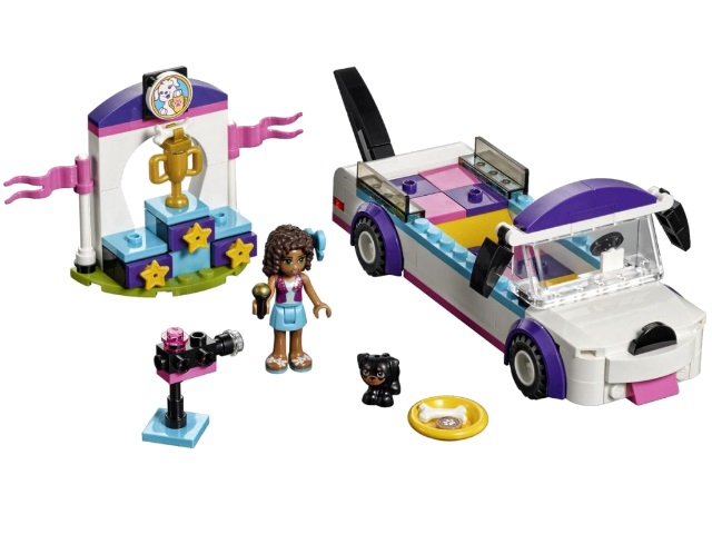 Из деталей набора Лего 41301 Вы сможете собрать подробную модель лимузина для щенков. Его корпус выполнен из белых элементов с добавлением голубых и розовых полос. Спереди располагается кабина, напоминающая голову собаки. Широкий капот украшают чёрный носик и розовый язычок, а лобовое стекло обрамляют забавные ушки, способные менять своё положение.