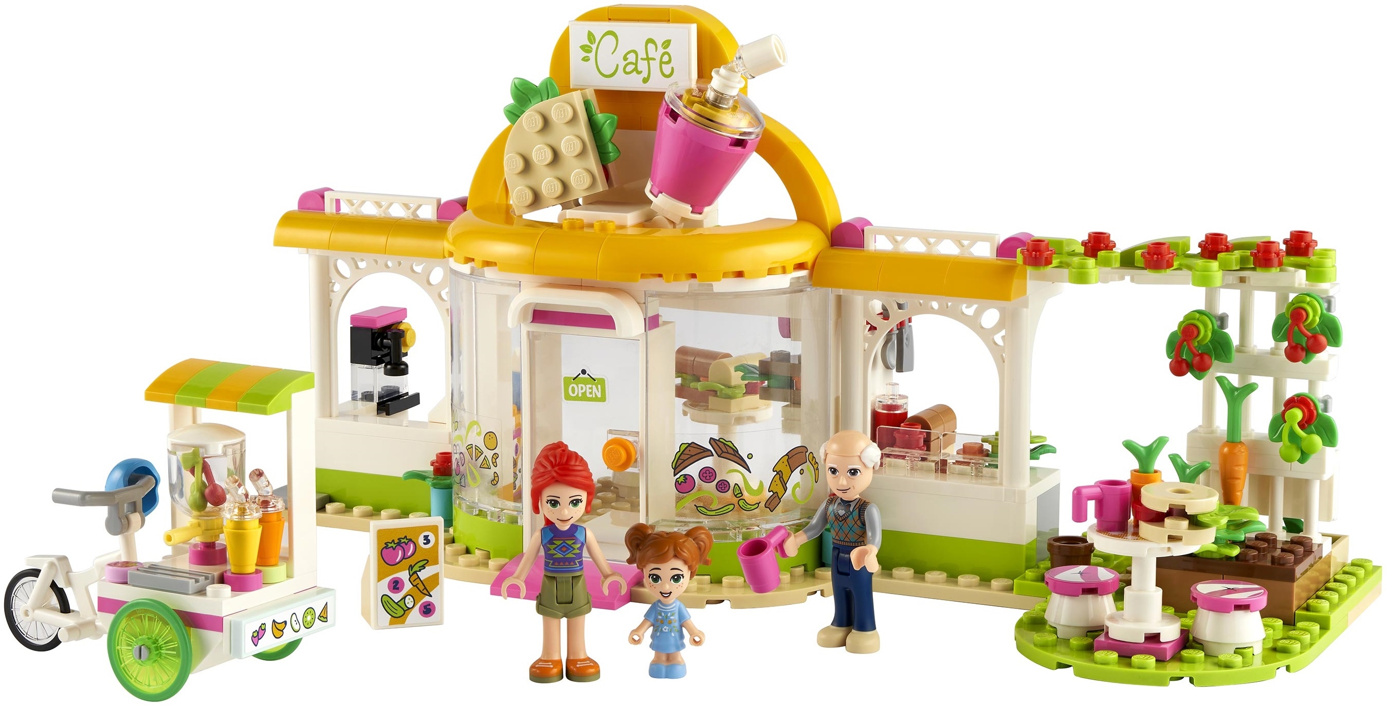 Веселый набор для творческой игры “Органическое кафе Хартлейк-Сити” из Лего 41444 научит быть небезразличным к будущему планеты. Выращивай продукты в собственном саду, готовь из них блюда и вкусные соки, утилизируй мусор для переработки и развози соки по городу.