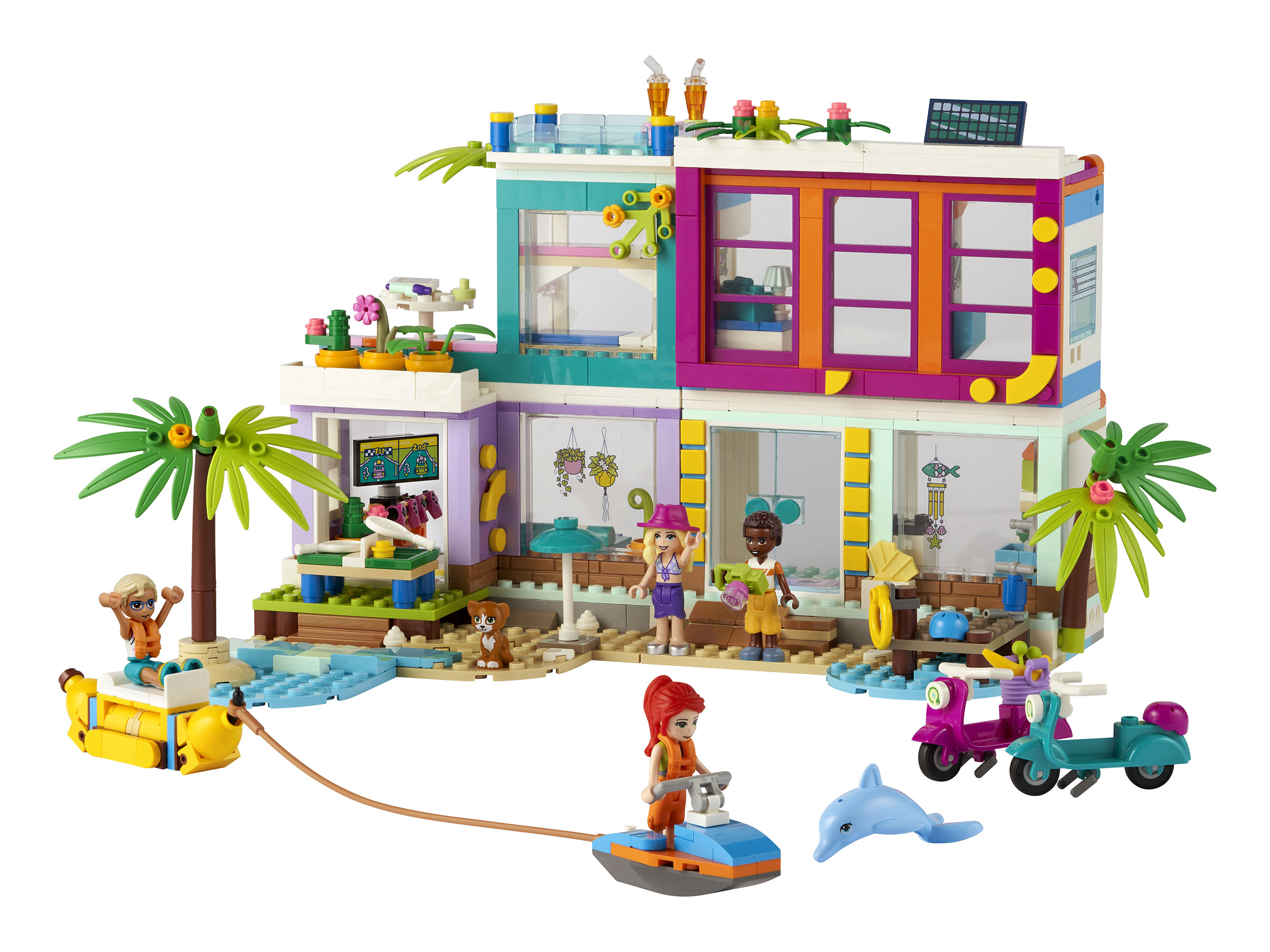 Увлекательный и многофункциональный Лего Френдс 41709 «Пляжный дом для отдыха» позволит весело провести время у моря и придумать массу интересных приключений. Комплект состоит из 686 элементов и включает в себя минифигурки четырёх друзей, а также фигурки кошки и дельфина.