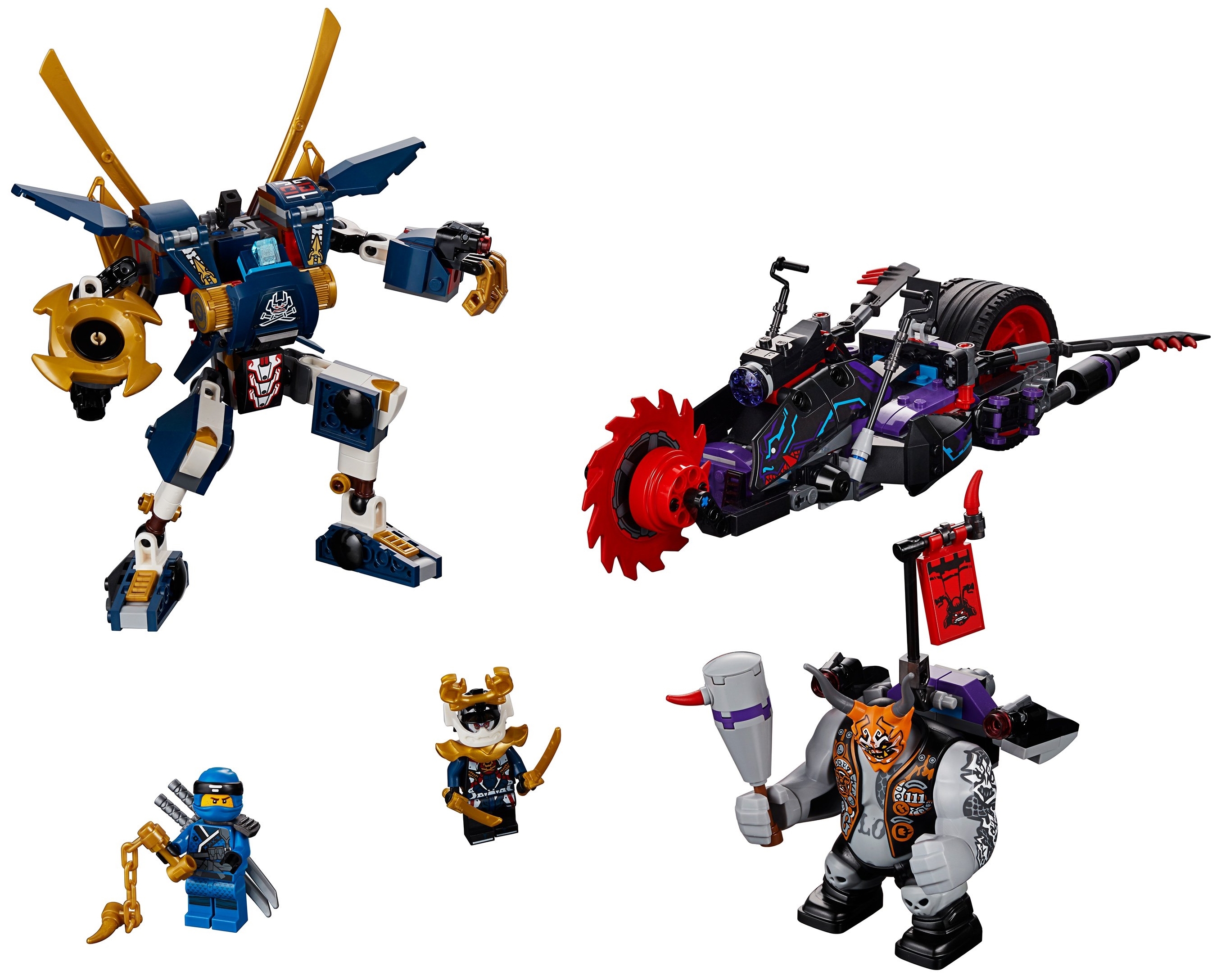 Злобный великан Киллоу завладел Они-маской Лжи и спешит доставить её в храм Воскресения. Недостающий артефакт должен как можно скорее занять своё место и помочь в проведении магического ритуала. Но ниндзя-защитники не допустят распространения злых сил и возрождения Гармадона. Они любой ценой должны остановить байкера, покидающего пределы города на мощном боевом мотоцикле. Хорошо, что окрестности Ниндзяго Сити патрулирует Самурай Икс. Его механический робот, оснащённый острыми клинками и вращающимся лезвием, сможет преградить путь злодею и нарушить его коварные планы.