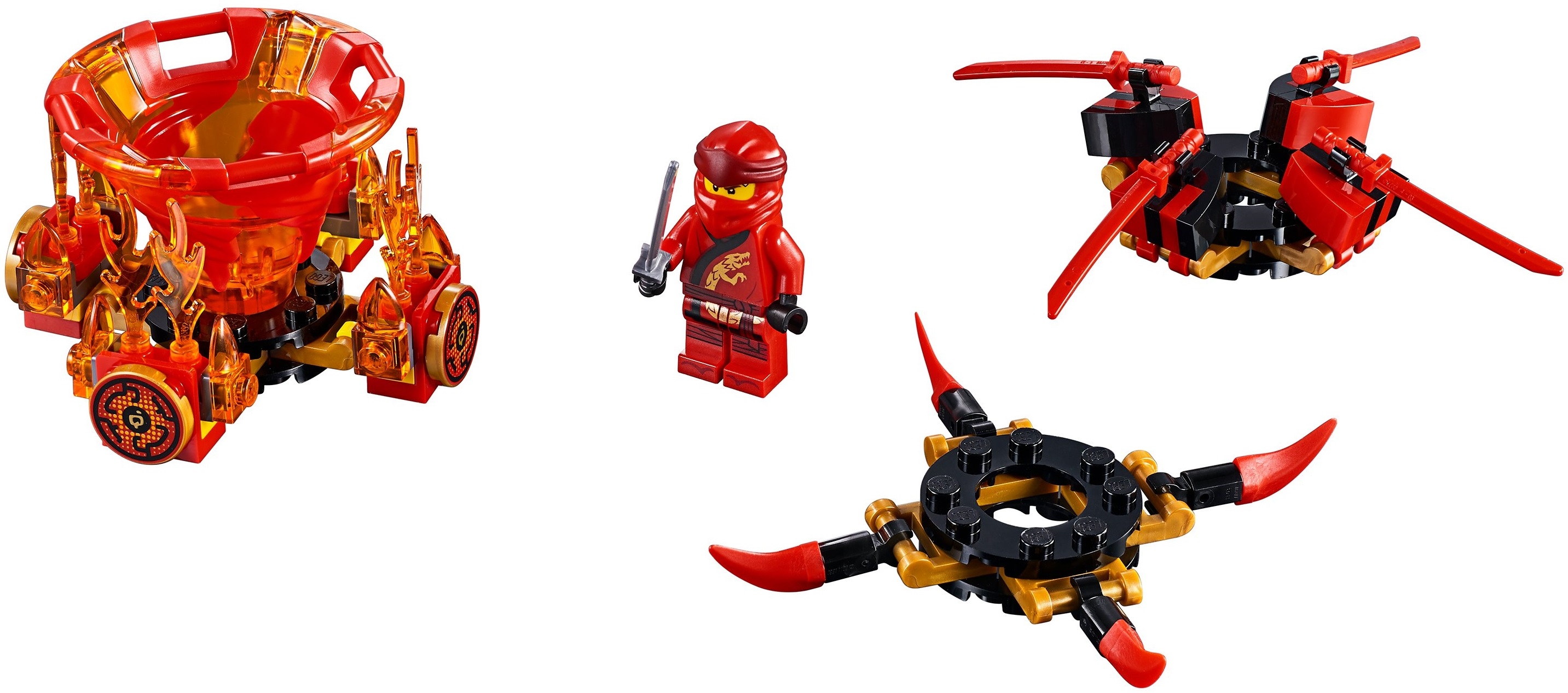 В Лего Ниндзяго 70659 боевое снаряжение можно крепить к верхней и нижней части спиннера. В режиме «Атака» можно закрепить огненные катаны, в режиме «Скорость» — шипы, в режиме «Защита» — элементы пламени. Вместе с другими наборами Ниндзяго ты можешь организовать много различных соревнований по боевому искусству Кружитцу!