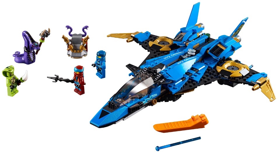 Закажи Lego Ninjago Штормовой истребитель Джея 70668 и посмотри, какие тут есть детали и минифигурки! Кроме этого, в набор входит различное оружие. Цена набора на нашем сайте вполне доступна, а ведь в конструкторе есть коллекционное оружие Джея — золотые Нунчаки Молнии! Собери друзей и устраивай сражения со злом! Помогай команде мастеров Кружитцу защитить свой Ниндзяго Сити!