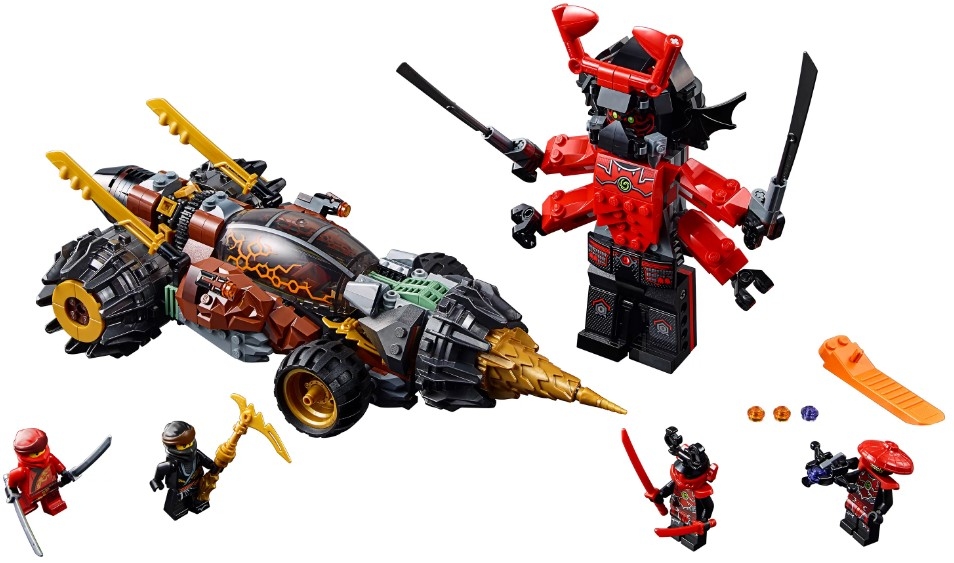 Конструктор Лего 70669 можно купить для творческого конструирования и ролевых игр. Усадив за руль Земляного бура минифигурку Коула, одержи победу в тяжелой битве и верни украденное Золотое оружие.