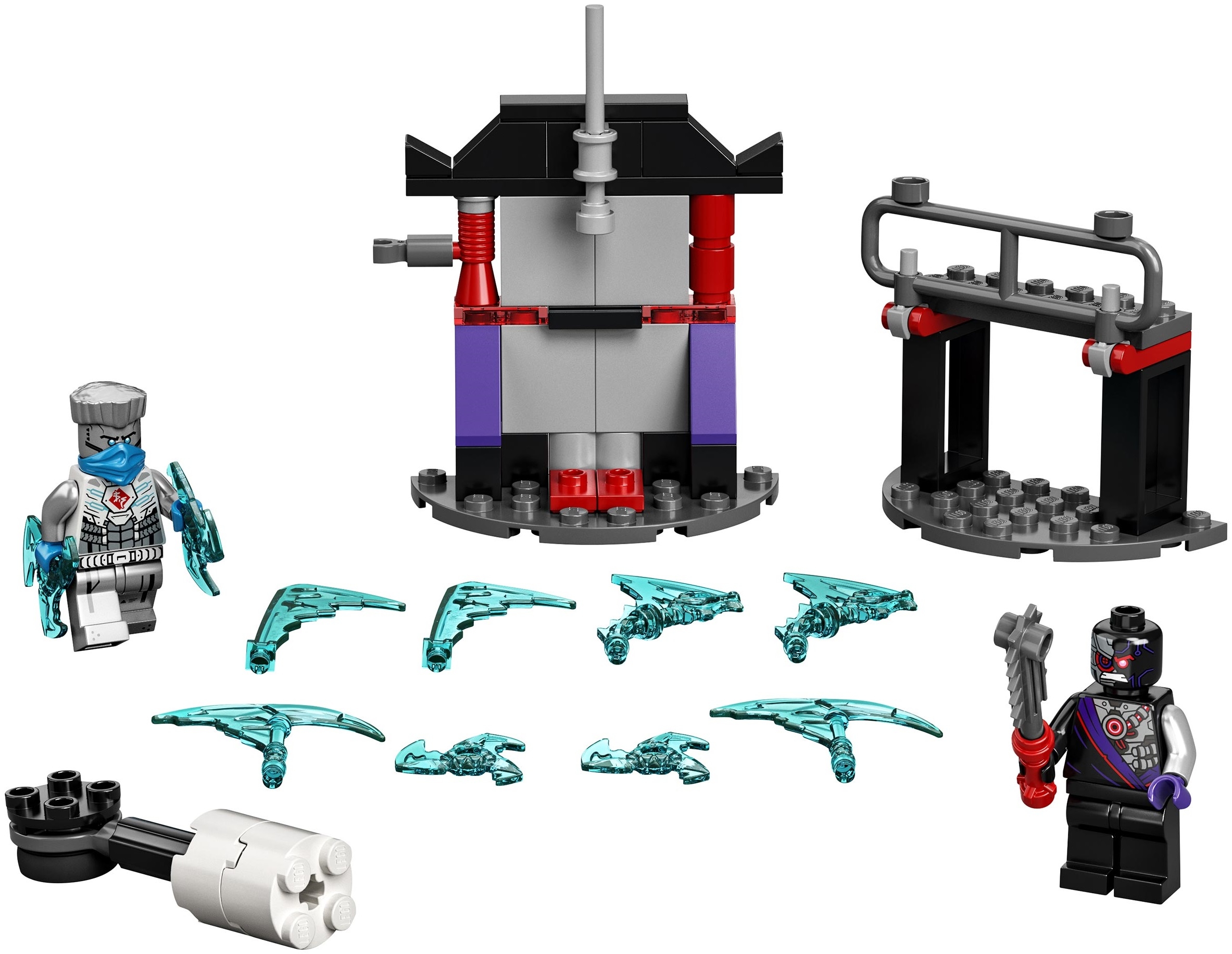 Собери из элементов набора Лего Ниндзяго 71731 двух противников и устраивай грандиозные битвы. Посмотри, ниндроиды хотят возвести здесь свою фабрику, чтобы начать сборку других своих приспешников. Мастер льда Зейн должен проявить все свои умения и смекалку, чтобы победить в этом бою. В его распоряжении сюрикены и ледяное оружие, но противник вооружен громадным мечом.