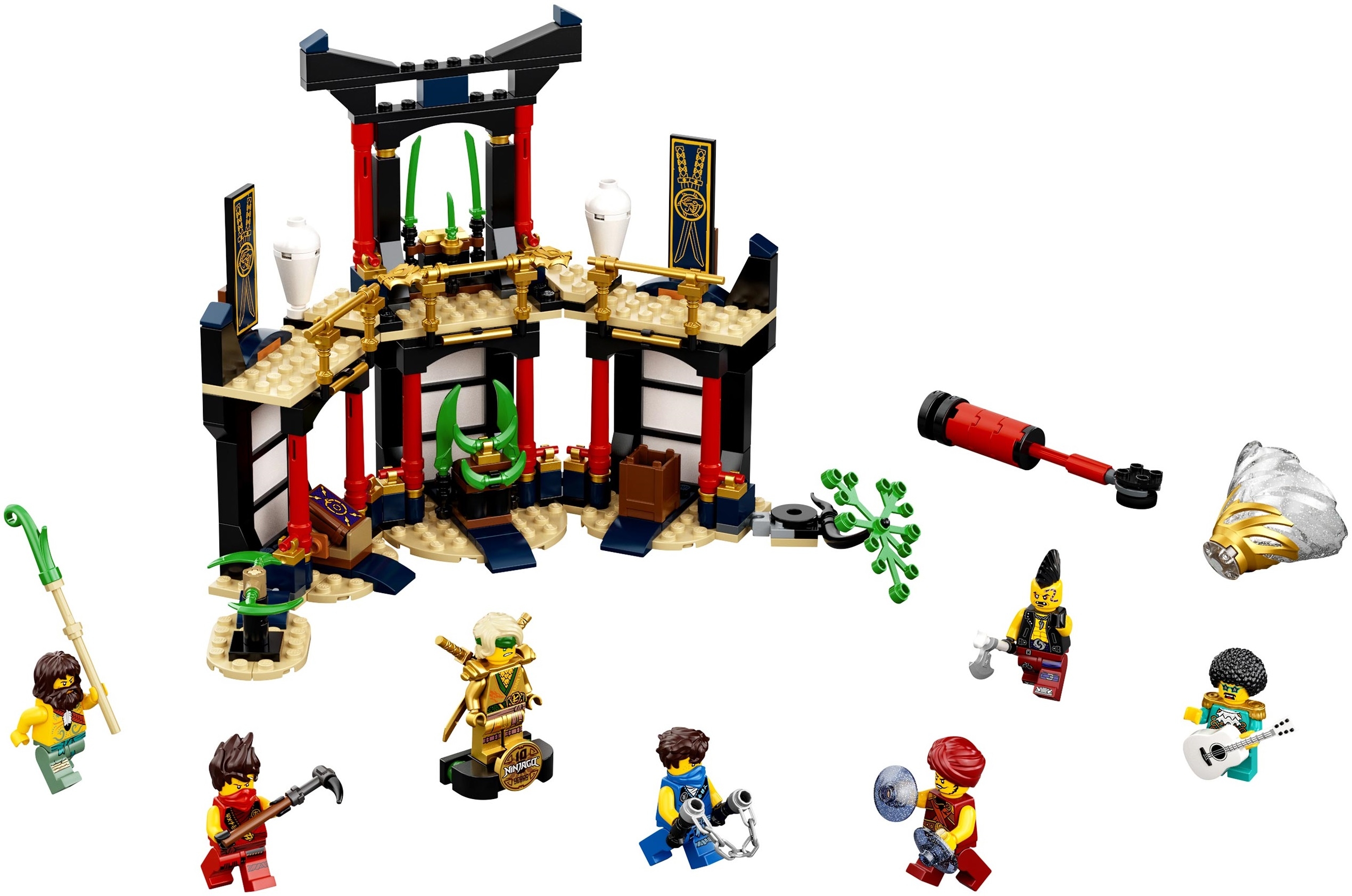 Из остальных элементов конструктора собирается двухэтажных храм. На первом этаже храниться редкие нефритовые клинки, ящик для хранения оружия, священная книга, а также вращающаяся платформа с оружием. Второй этаж огражден золотыми перилами, украшен вазами и декоративным полотном, в центре этажа установлены на специальных подставках уникальные мечи, которыми будут награждены победители турнира.