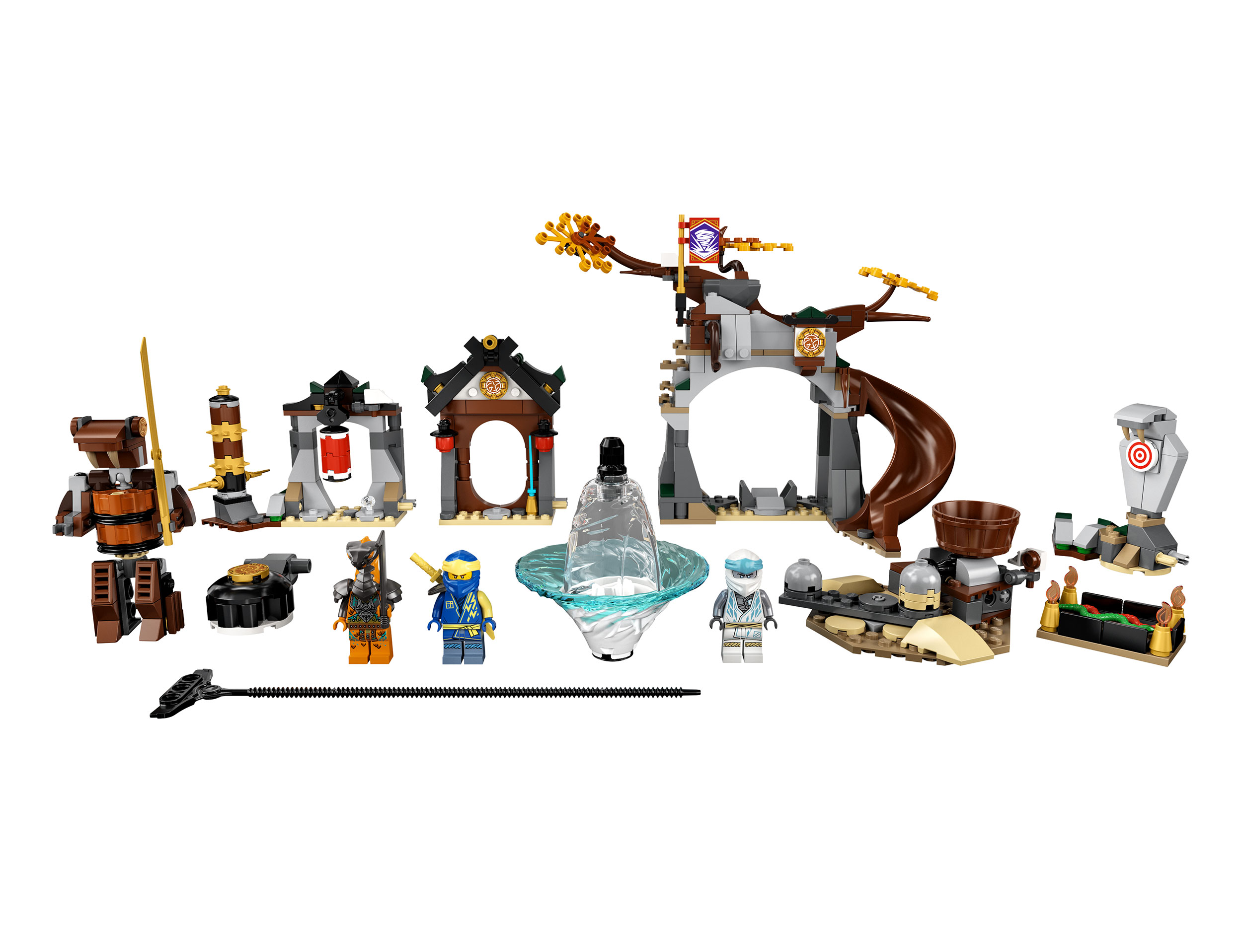 Помоги Джею и Зейну поддерживать форму в Тренировочном центре — закажи конструктор Lego Ninjago 71764 и проводи тренировки на специальных приспособлениях. Это вращающийся манекен, боксерская груша, яма со змеями, бочка-катапульта, а для спарринга есть Удав-разрушитель.