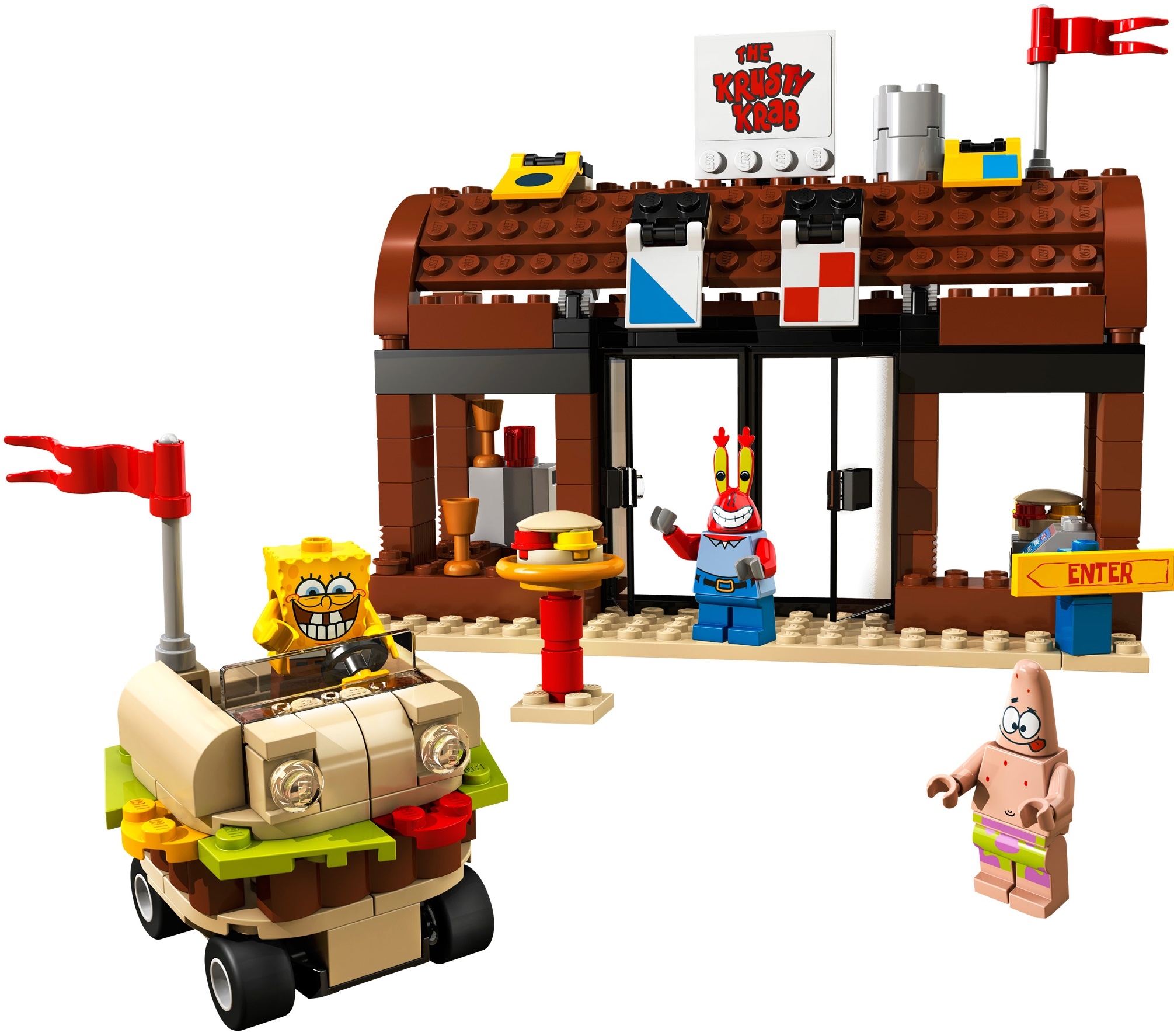 Из красочных деталей набора Лего 3833 детишки смогут самостоятельно собрать ресторан мистера Крабса, удивительную машинку для Петти Крабби и много других интересных вещиц, которые сделают Вашу игру очень интересной и необычной.