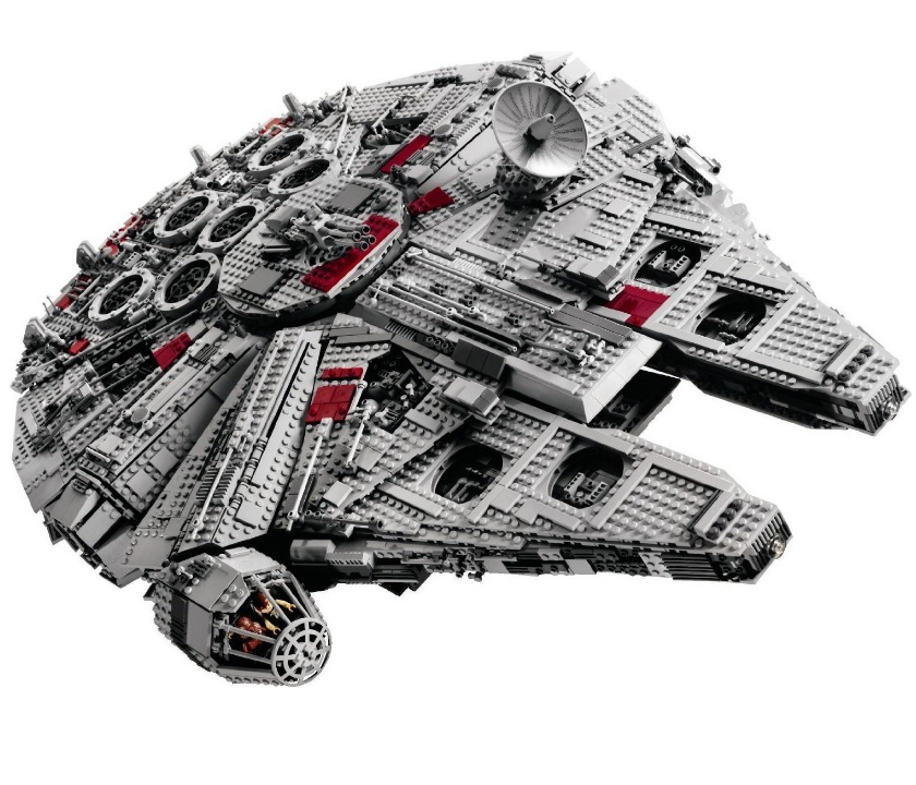 Из деталей набора Лего 10179 Вы сможете построить самую масштабную модель из серии Звёздные войны. «Сокол» состоит из 5197 деталей и имеет размеры 84х56х21 см.