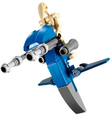 Одноместная воздушная платформа из набора Лего 30004 часто использовалась боевыми дроидами Торговой Федерации. С её помощью они могли патрулировать важные объекты и, при необходимости, атаковать противников.