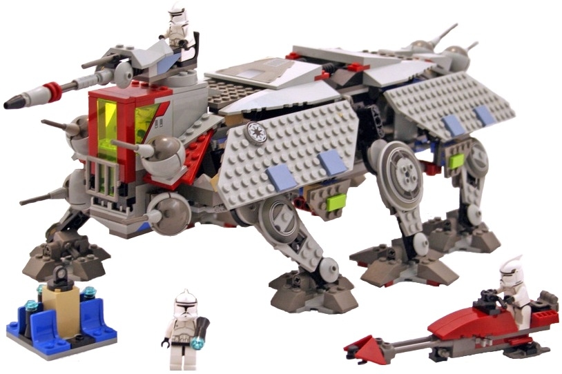 АТ-ТЕ из набора Лего 4482 – это многоцелевая боевая машина, разработанная для выполнения множества функций – от транспортировки отрядов солдат-клонов на поле боя до непосредственного участия в атаках вражеских позиций.