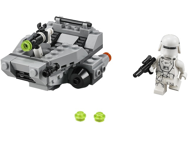 В наборе Лего 75126 Вы найдёте детали для создания микромодели снежного спидера Первого Ордена, а также минифигурку штурмовика с белой бронёй и бластером.