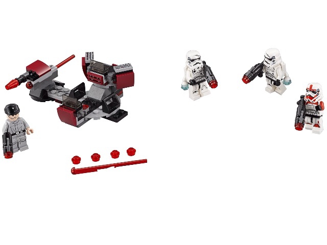 В наборе Лего 75134 Вы найдёте детали для создания имперской боевой установки, а также 4 минифигурки с оружием и бронёй: 2 имперских штурмовика с реактивными ранцами, ударный штурмовик и офицер.