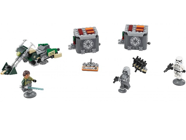 Из деталей набора Лего 75141 Вы сможете построить детализированную модель скоростного спидера. Его корпус выполнен из серо-зелёных элементов с добавлением бежевых акцентов. Центральную часть конструкции занимает место водителя с удобным сидением, подножками и рычагами управления. Спереди видны две выносные опоры, поддерживающие систему освещения и треугольные рулевые крылья. В хвостовой части сосредоточено ходовое оборудование, состоящее из репульсорного двигателя, соединительных шлангов и закрылков. Под днищем установлены прозрачные пластины, имитирующие парение над поверхностью. При желании спидер можно соединить с двумя открывающимися контейнерами. В одном из них предусмотрен дисплей для хранения четырёх термальных детонаторов, а в другом – крепление для четырёх бластерных винтовок.