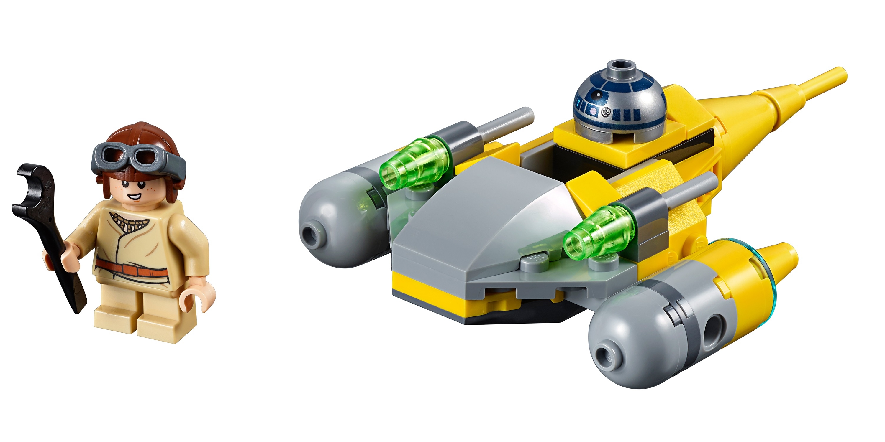 В набор входит минифигурка совсем юного Энакина в бежевом комбинезоне. У него есть гаечный ключ, чтобы в любой момент можно было отремонтировать микроистребитель. На голове — коричневый шлем пилота и серые очки.