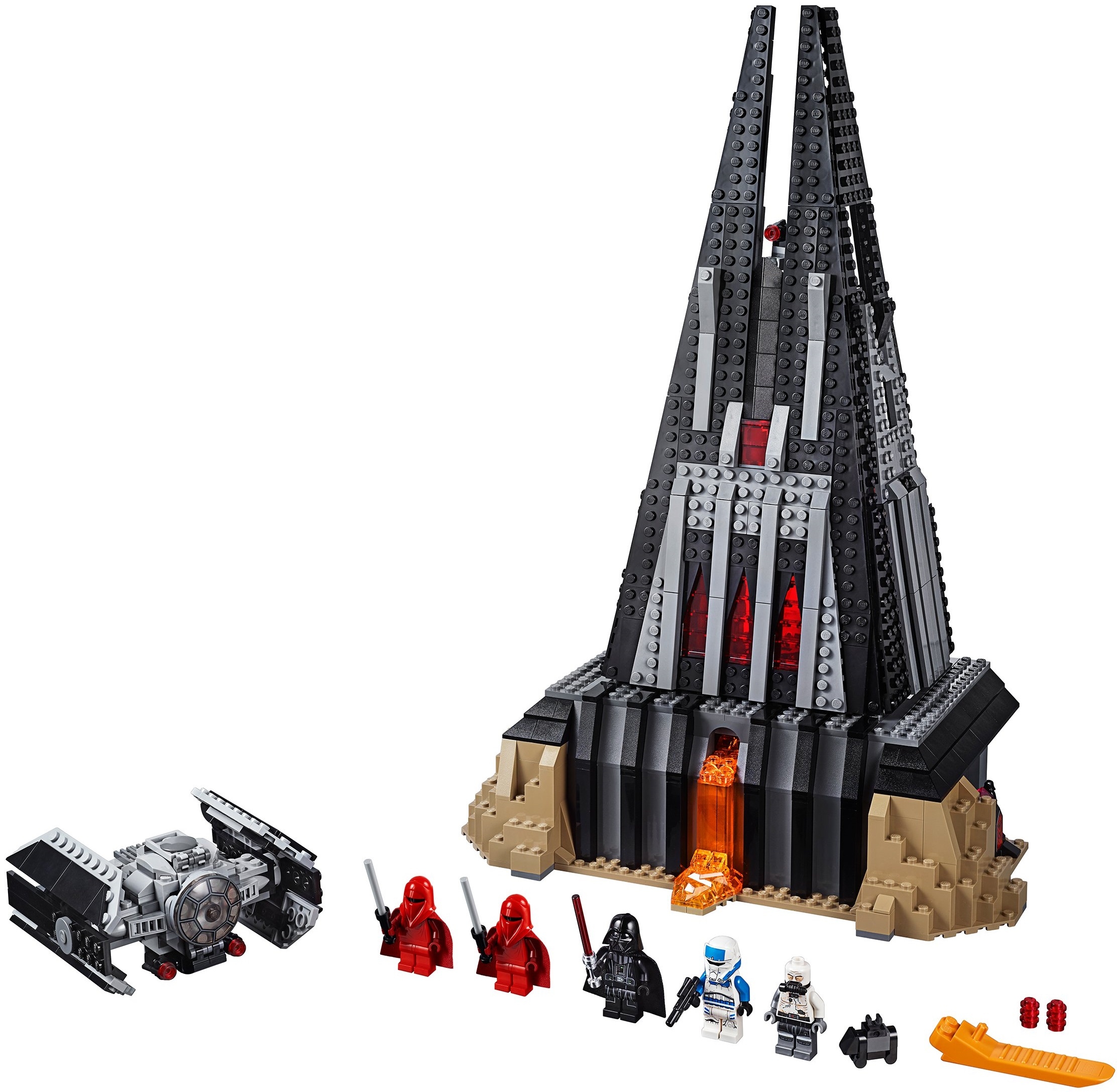 Замок Темного Лорда построен в форме пирамиды из деталей черного цвета. Такая форма, по задумке Верховного генерала Галактической империи, должна была стать хорошим проводником Темной энергии. Построен замок на краю пропасти, в которую стекает лава. Поток лавы искусно создан из кубиков Лего.