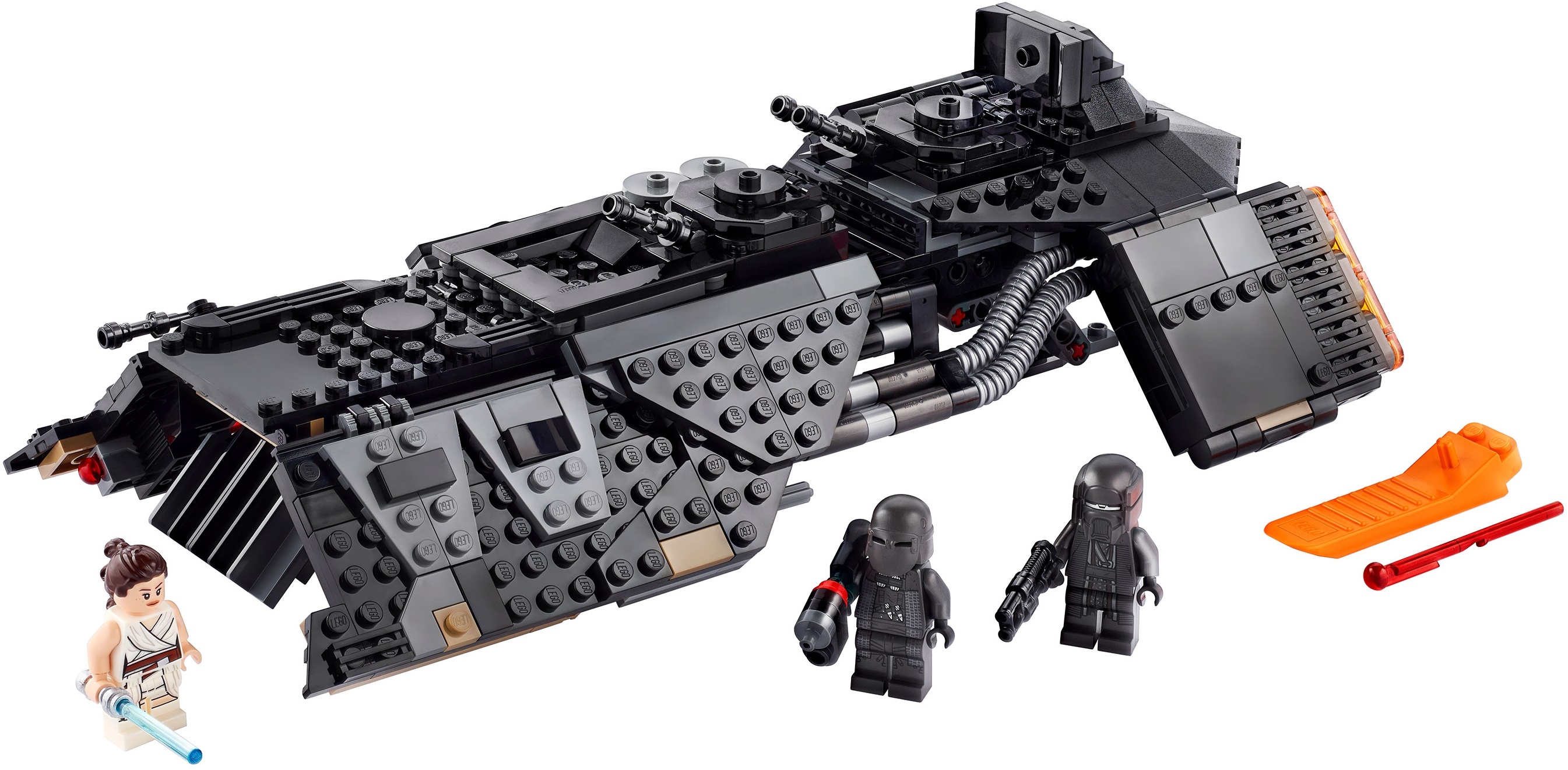 Конструктор Лего Звездные войны 75284 состоит из 595 деталей, из которых собирается злодейский космический корабль достаточно внушительных размеров, а также 2 минифигурки рыцарей Рена и минифигурка Рей. Минифигурки героев максимально детализированы и полностью повторяют образ своих героев из фильма. Рей одета в белый костюм и вооружена световым посохом. Рыцари вооружены мощными бластерами и защищены черными шлемами.