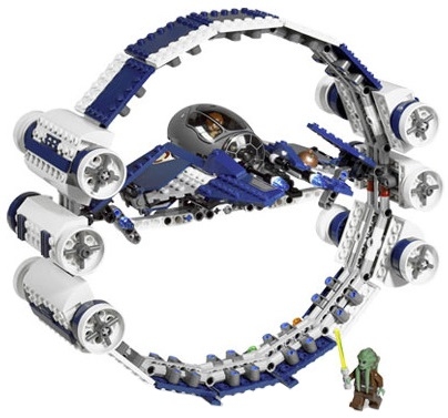 Вместе с гипердвигателем из набора Лего 7661 Вы сможете беспрепятственно пересекать галактику и выполнять различные миссии. В центе кольца есть специальная платформа для лёгкого перехватчика или истребителя, не способного самостоятельно входить в гиперпространство. По бокам кольца расположены ракетные установки, которые помогают отбивать вражеские атаки во время подготовки к гиперпрыжку. Внизу установлены сигнальные красные и зелёные огни, которые заметны издалека.