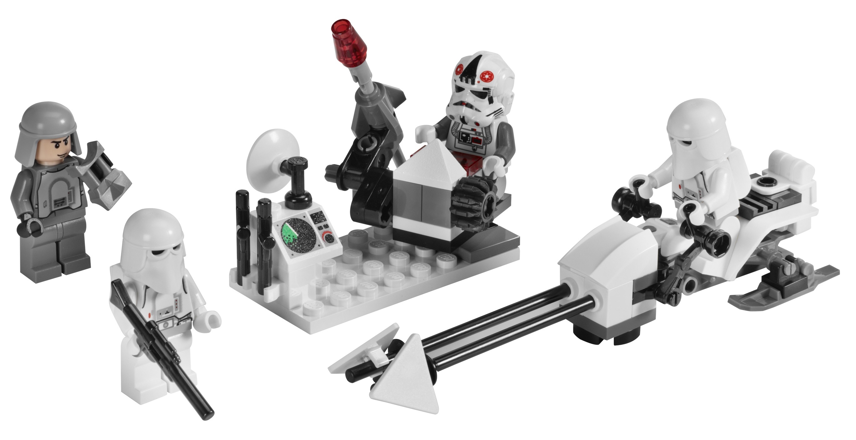 Комплект Лего 8084 состоит из мини-фигурок 2 снежных штурмовиков, имперского командира и водителя АТ-АТ.