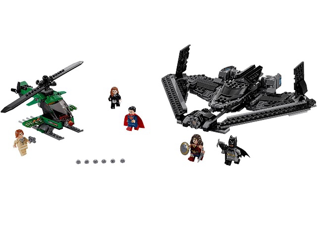 В наборе присутствуют 5 минифигурок с оружием и аксессуарами: Бэтмен, Супермен, Чудо-женщина, Лоис Лейн и Лекс Лютор.