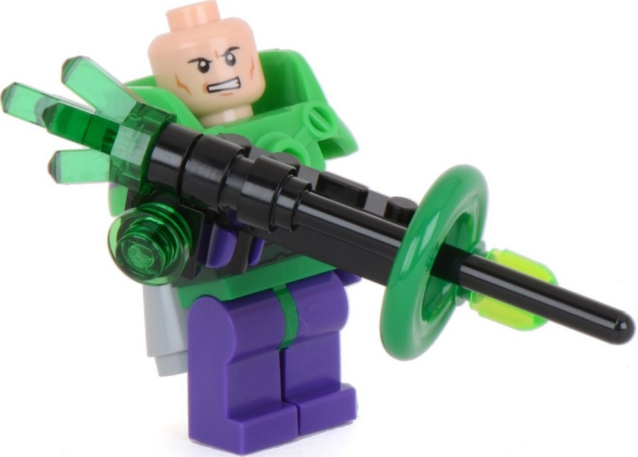 Минифигурка Лекс Лютор (sh039), зелёная броня и детали для создания разрушительной пушки с кристаллом.