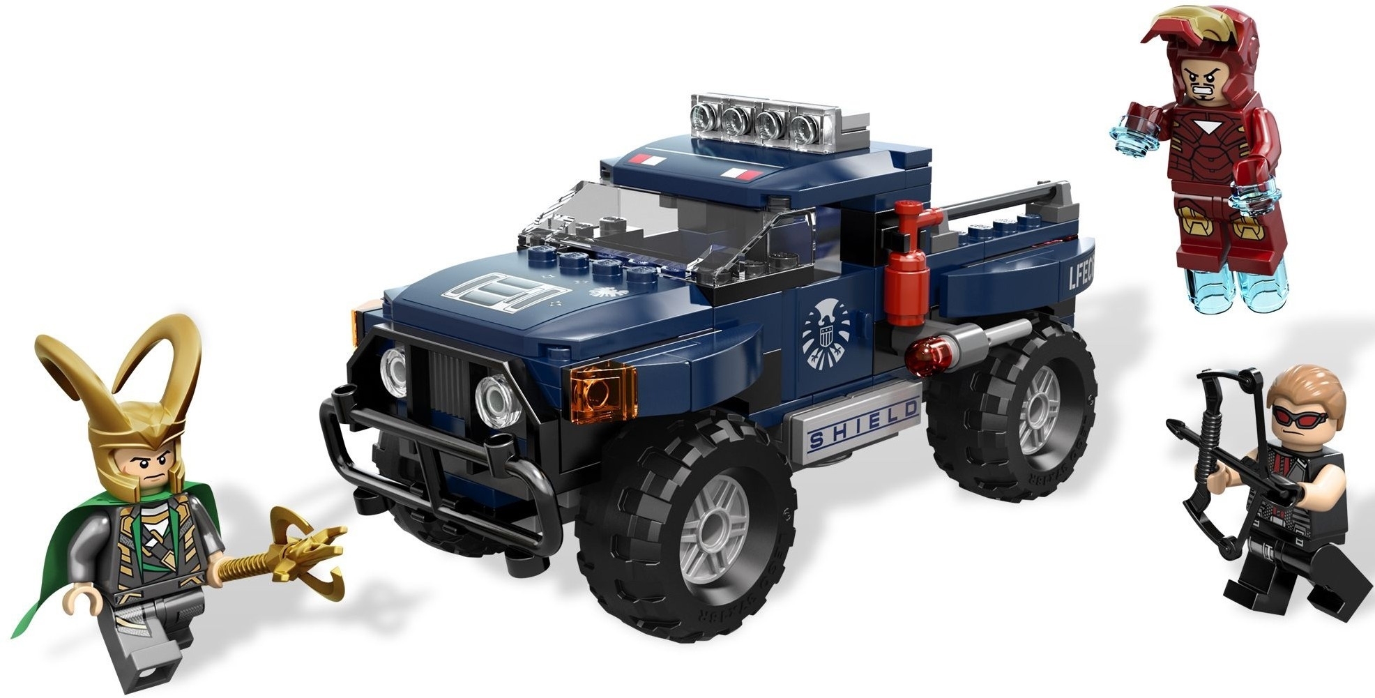 В набор входят минифигурки Железного Человека, Локи и Соколиного Глаза.