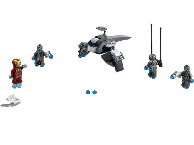 В наборе Лего 76029 Вы найдёте 4 минифигурки с оружием и аксессуарами: Железный Человек, офицер Альтрона и 2 солдата Альтрона.