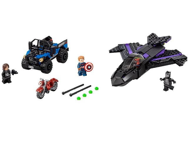 В наборе присутствуют 3 минифигурки: Капитан Америка, Чёрная пантера и Зимний солдат (Баки).