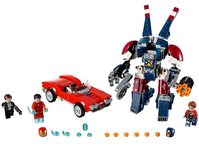 В наборе присутствуют 3 минифигурки с оружием: Железный человек, агент Колсон и Джастин Хаммер.