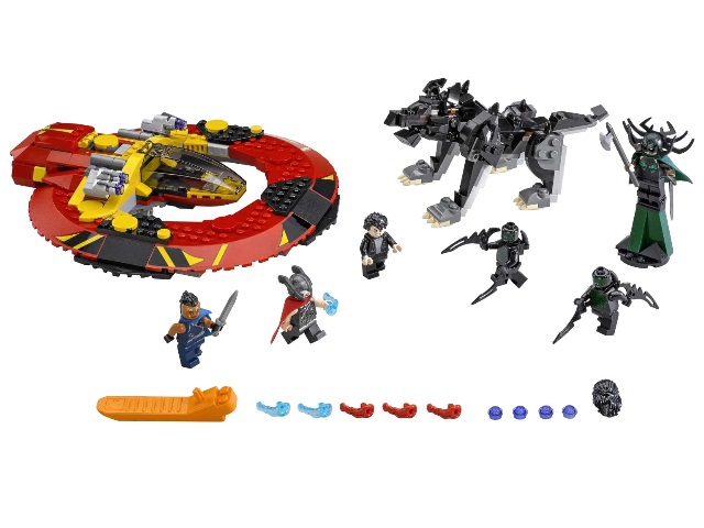 В наборе присутствуют 6 минифигурок с оружием и аксессуарами: Тор, Валькирия, Брюс Беннер, Хела и два воина-берсерка.