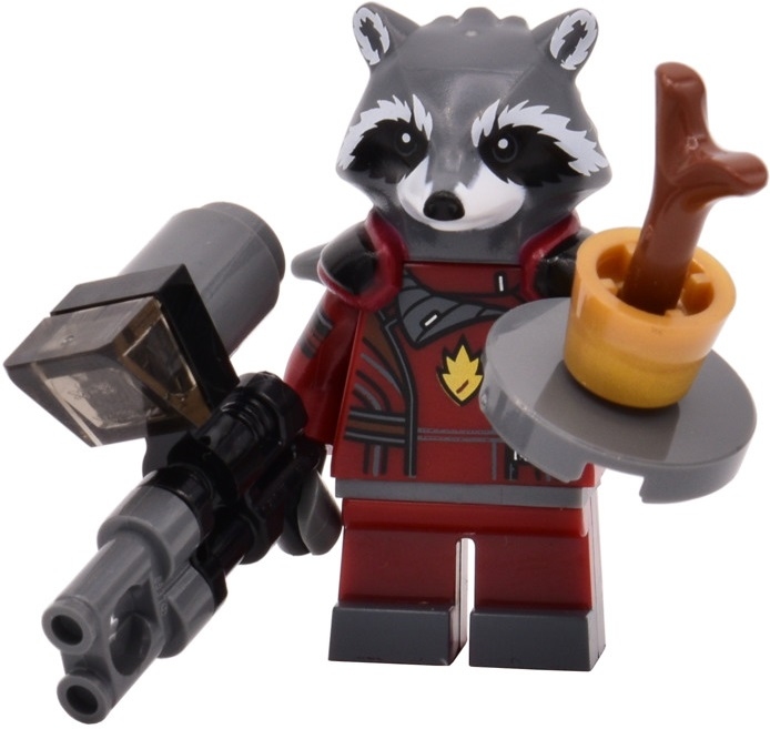 Минифигурка Реактивный Енот (sh090), детали для создания оружия и ростка Грута (См. фото товара выше)